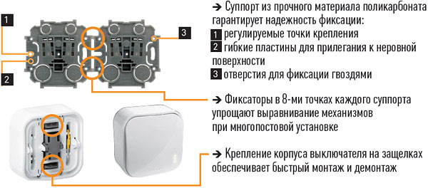 Длительный срок эксплуатации изделий. Клавиши выключателей изготовлены из ударопрочного и износостойкого ABS-пластика.